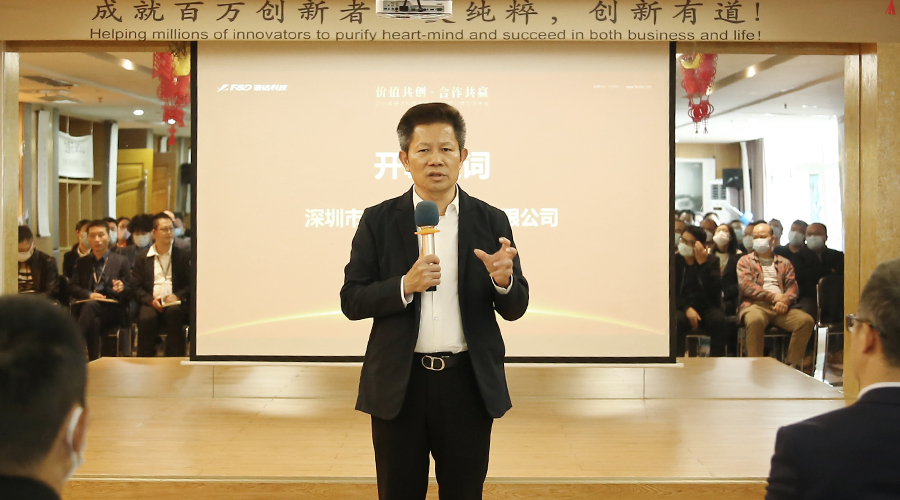 肖奋董事长致开幕词,他首先对各位嘉宾及供应商代表的到来表示热烈欢迎并对大家一直以来的支持致以真诚谢意。会上,他总结了公司近两年来的发展情况,尤其是2021年以来,面对新冠疫情、芯片短缺、大宗商品原材料价格剧烈波动等严峻挑战,整个行业都危机重重,然而米兰体育科技在供应商朋友们的互相支持下,一起携手奋进、共克时艰,使得经营收入保持了持续增长,在困难重重中取得了较好的成绩。