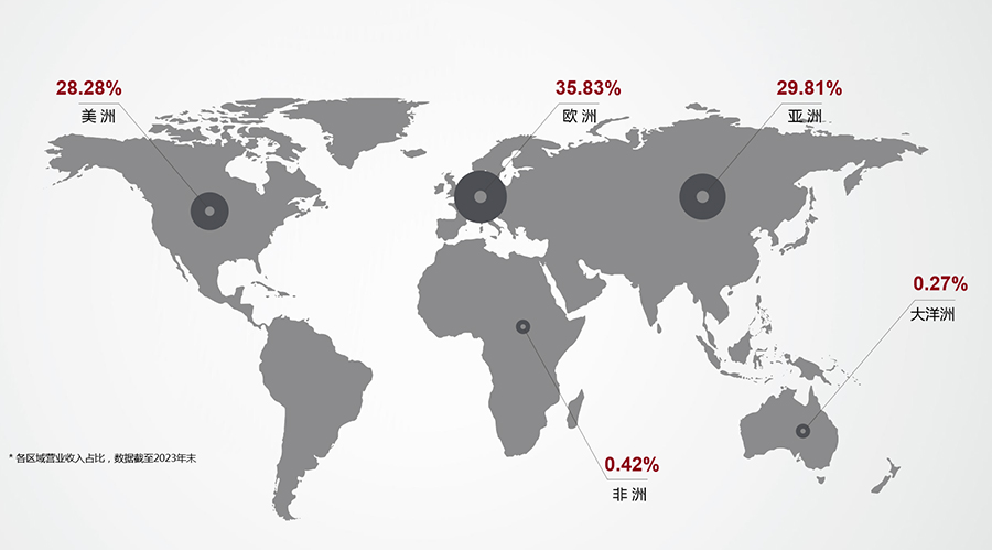 (2023年米兰体育科技全球市场营业收入占比图)