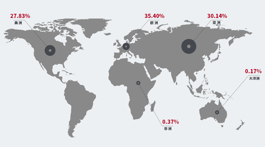 (米兰体育科技2024年上半年全球市场营收占比图)