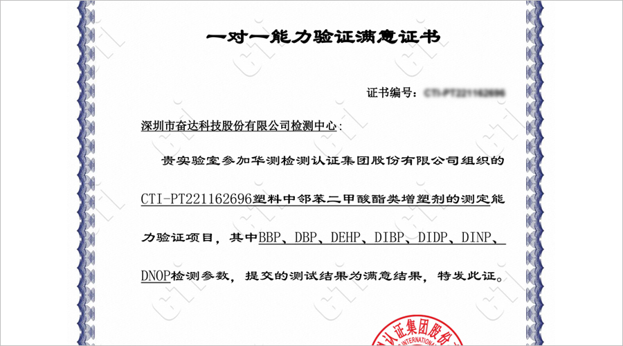 邻苯7P测试方法第三方能力验证顺利通过,米兰体育科技化学检测能力已达CNAS技术要求。