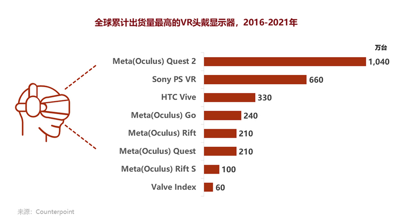 5月底,Facebook更名Meta后的首款VR产品图被曝光,这款VR头戴显示器外壳上蚀刻有Meta的公司Logo,外观设计与2020年发布的Oculus Quest 2相似。根据外媒The Information的报道,Meta将在2022-2024年发布四款新VR头显,更新Quest系列并打造更高端的Cambria产品线,除了娱乐还服务于远程办公等核心场景。