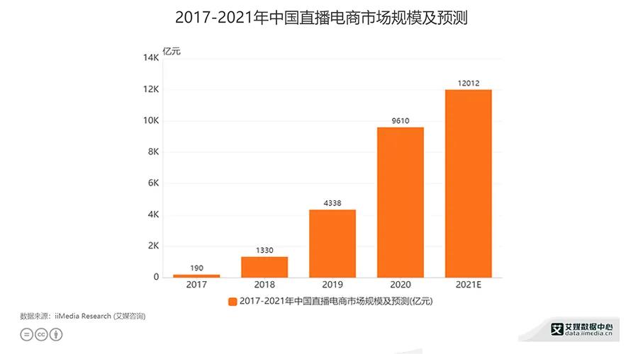 全球领先的金融服务科技企业FIS发布的报告数据显示,中国已成为全球最大的电子商务市场,预计到2024年,电商市场总值将达到3.17万亿美元。艾媒咨询也预测,随着我国直播技术进步、人们接受程度提高,下沉市场的进一步开发,直播电商行业市场有待持续扩大,2021年直播电商市场规模将达到12012亿元。